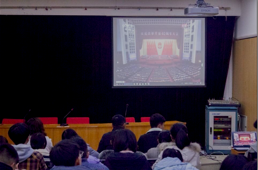大会上,习近平总书记运用四个“基于”、十个“始终坚持”、三个“伟大飞跃”、三个“充分证明”、九个“必须坚持”等词汇高度总结改革开放40年的巨大变革,他指出改革开放是我们党的一次伟大觉醒、是我们党从理论到实践的伟大创造、是中国人民和中华民族发展史上一次伟大革命,正是这个伟大革命推动了中国特色社会主义事业的伟大飞跃。行管支部教工党员在观看过程中表示改革开放四十年的成就启示我们要解放思想、勇于创新、脚踏实地、敢于担当,用昂扬的精神状态、饱满的工作热情投入到学校发展、学院建设之中。青年学子黄会岐表示将牢记习总书记的嘱托,向“改革先锋”学习致敬,不仅做时代的见证者、享有者,更应该成为践行者、奋斗者,珍惜大学光阴,心怀梦想、脚踏实地,为深化改革开放贡献力量。
