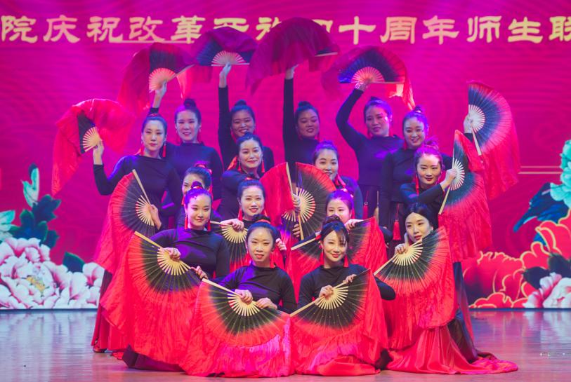 鸾吟凤唱,羽衣蹁跹。晚会在极具民族特色的舞蹈《跳春》中正式拉开了帷幕。情景说唱《誓言铮铮》用慷慨激昂的方式表现了丝袜av 青年学子铮铮铁骨、保家卫国的精神气概;翩翩少年的《纸扇书生》诉说了一段文化的源远流长,一幅画卷的雅趣横生;艺术团的《时代之音》用歌声演绎了改革开放40年来从未停歇的步伐,唱出了属于我们这个时代的声音;由女教职工带来的舞蹈《扇舞丹青》羽衣蹁跹,轻柔和美,充满美感,用富有中国传统韵味的扇舞把中国美展现的淋淋尽致,引得全场掌声不断;创意无限的音诗画《厉害了我的国》将歌曲、朗诵和舞蹈相结合,展现了改革开放40年以来我国强大的科技力量与经济实力;小品《喜从天降》和《在那遥远的地方》以风趣幽默的动作,诙谐调侃的语言,引得现场掌声、笑声不断;相声《幸福的味道》带我们感受生活中的酸甜苦辣,雅俗共赏;由丝袜av 研究生带来的舞蹈《不染》用轻盈曼妙的舞姿吸引了在场全体师生的目光;由丝袜av 园林系教授带来的歌舞《天空之城》用空灵动听的歌声表达了对美好未来的希望。由院领导班子成员、党外人士共同带来的诗朗诵《中国路》,用深情动人的语言展示了祖国改革开放40年来的历史性变革、历史性成就,展现了丝袜av 奋力拼搏、滴水穿石的韧劲,师生同台齐颂改革开放,大气磅礴,激情飞扬,别出心裁的编排,规模宏大的气势,将整场晚会推向了高潮。