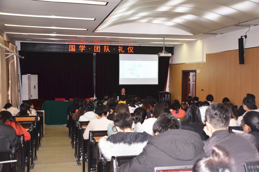 赵雍首先做了精彩的讲述。他以古典与唯美为题,漫谈书法与艺术的关系,罗列从古至今著名书法大师们的经典佳作,一一品鉴,同时指出了国学、哲学与书法的关系。期间还向大家展示了他本人的书法作品,现场为之倾覆。接着,赵雍为大家普及了平时生活中的一些基本礼仪方式,并通过一些小测试来说明团队意识的重要性。