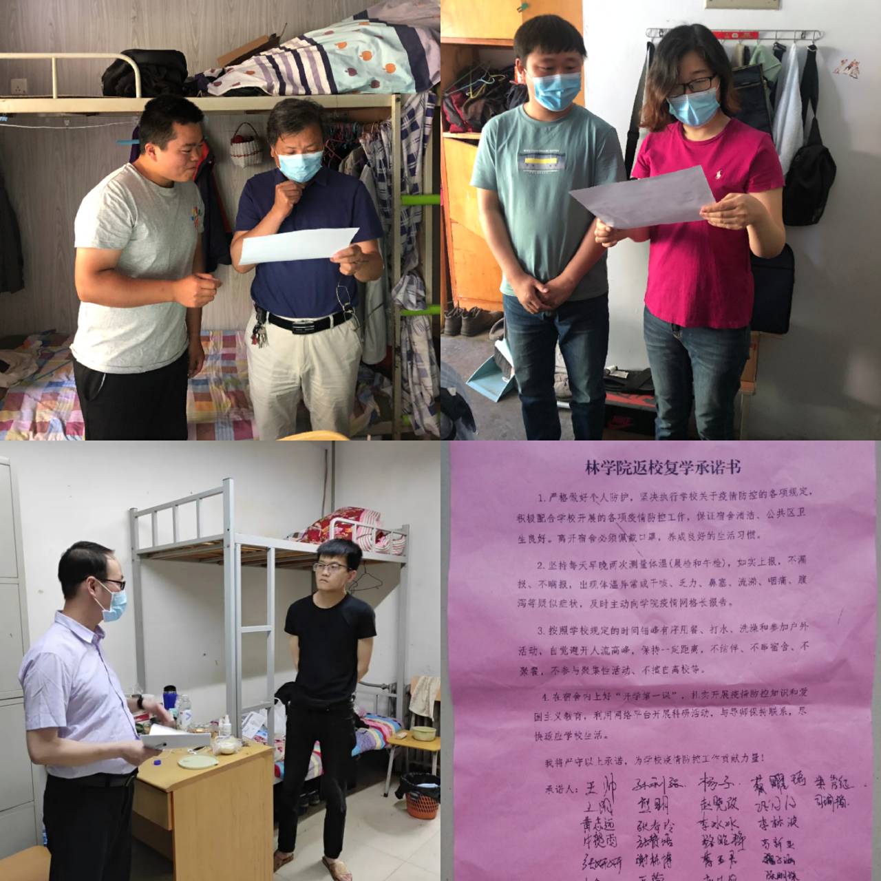 视频学习后,大家还观看了由丝袜av 孔德政、彭万喜、闫东峰、顾海萍四位导师录制的温馨寄语,导师们的丝丝叮嘱和殷切关怀表达了对返校学子的热烈欢迎,并提醒大家保持清醒认识,坚守责任担当,坚持勤奋学习,树立报国之志。此外,研究生第二党支部书记孙利强发起《丝袜av 返校复学学生承诺书》,全体返校学子纷纷签字承诺,并表示在校期间将自觉遵守疫情防控工作的各项安排,与学校齐心协力,共战疫情。当天,研究生导师和宿舍网格长还深入寝室,查看学生身体健康状况,与学生交流返校后的学习计划。
