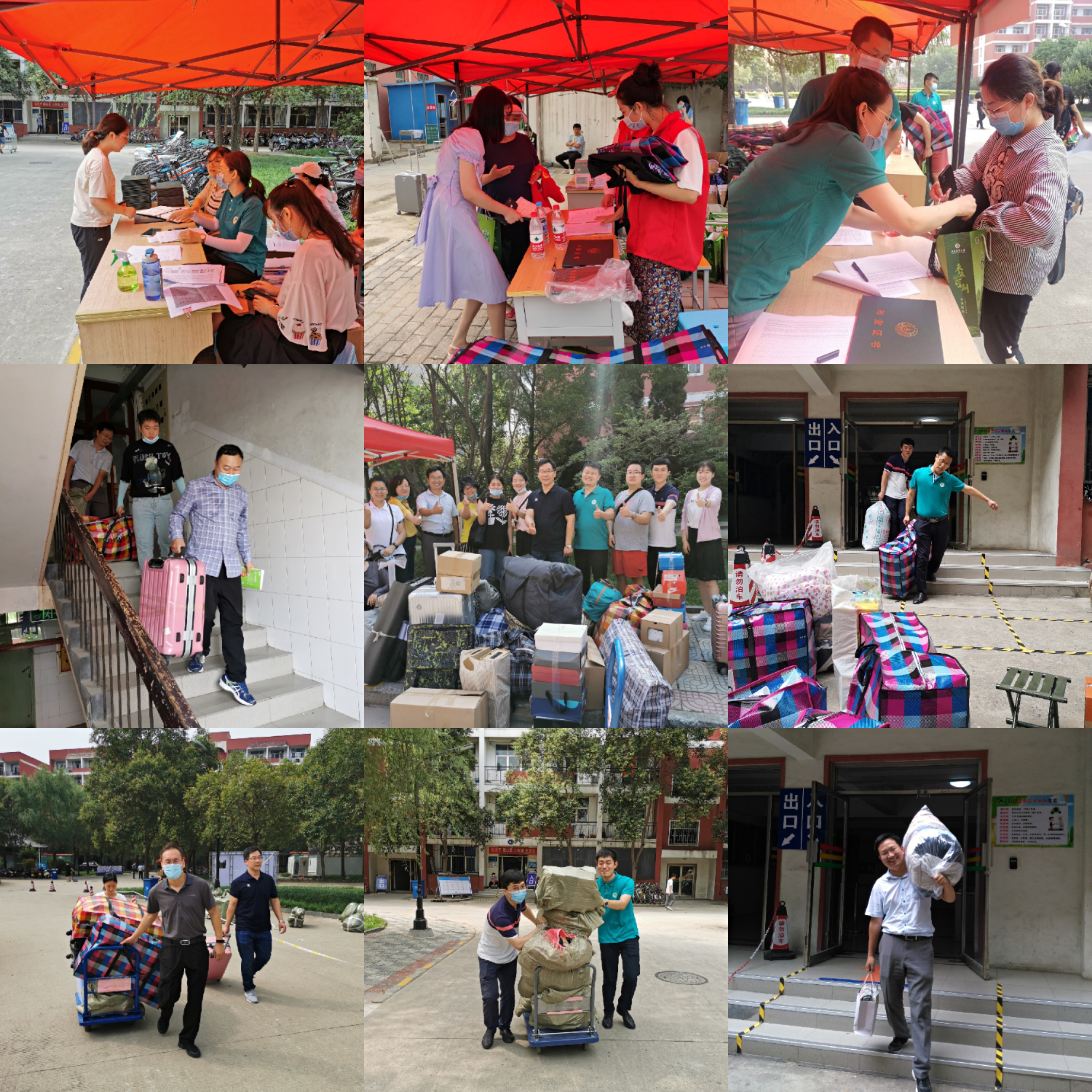 6月19日至20日,在桃李园和二区学生公寓,学院教工党员志愿者按照前期的分工,各司其职、同心协作,志愿服务活动细致周到、井然有序。学院大本营内,老师们核验健康码、测量体温、分发毕业证学位证,为每位返校毕业生送出手写的明信片和毕业礼物,热情的服务和亲切的话语让毕业生深切感受到母校的温暖。学生宿舍楼内,老师们在走廊穿梭不停,楼梯间上上下下;校园里,头顶烈日,肩扛手拉,大汗淋漓,成了校园里最亮丽的风景线。他们把对毕业生的美好祝福融在行动中,装进包裹里,用爱为学生书写大学最暖的印记。很多学生留下了感动的眼泪,和老师一一拥抱,告别这难忘的师生情。艺术系教工党支部书记杨红旗感慨到:“帮助学生从楼上搬运沉重的行李,虽然累点儿,但使学生内心感到温暖,学生也将终生难忘,把学生与老师、学院、学校的感情拉得更近,一切都是值得的!”