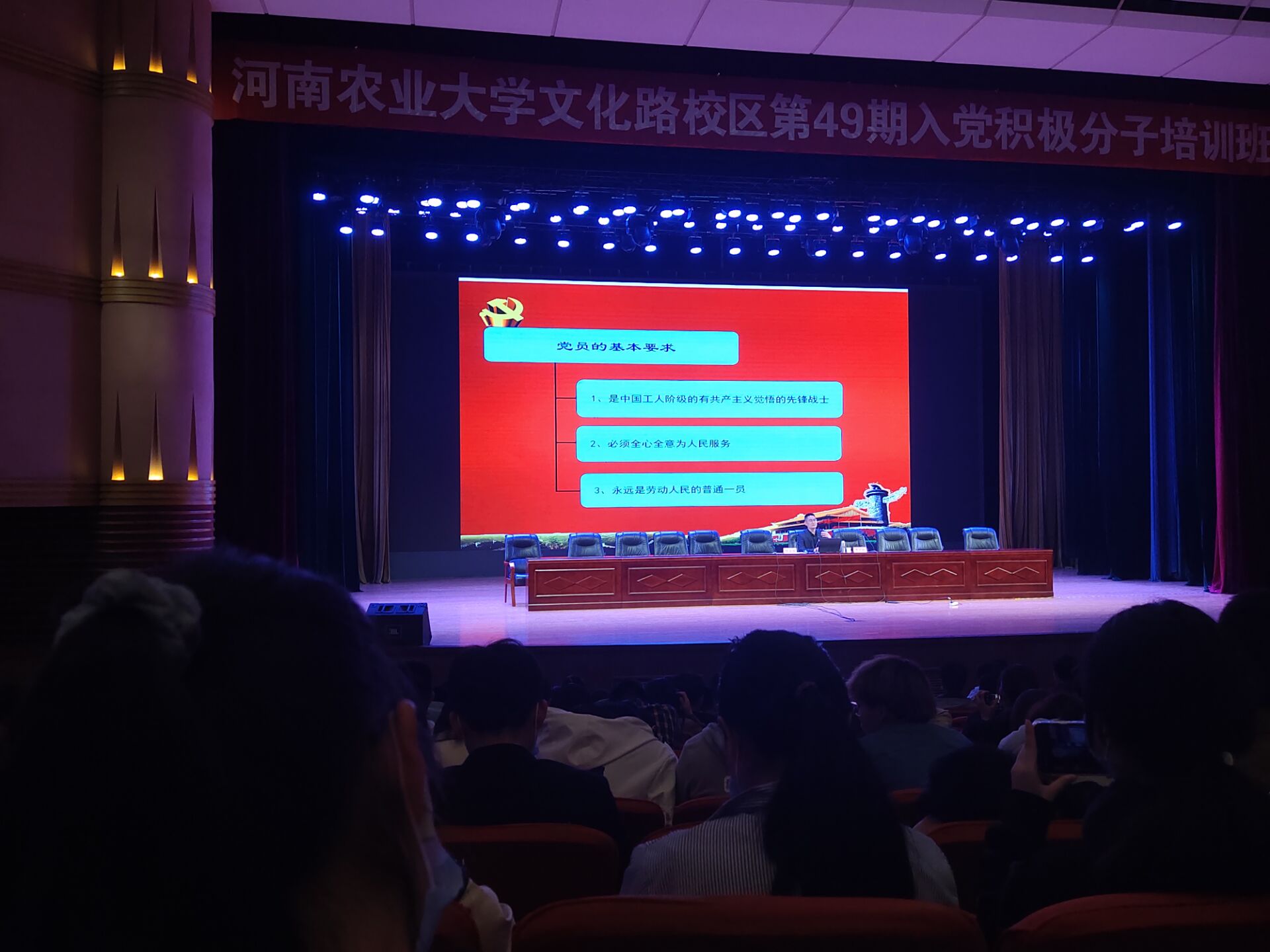 仪式伊始,全体师生奏唱国歌,随后,风景园林与艺术学院党委副书记胡明忠宣读《关于举办第49期入党积极分子培训班的通知》,介绍本次培训班的意义和课程设置等。接着,机电工程学院党委副书记赵宁宣读《入党积板分子培训班学员管理规定》,规范党规章制度,加强对学员的管理。最后,理学院党委书记候金超做《中国共产党党员的条件和发展程序》报告。