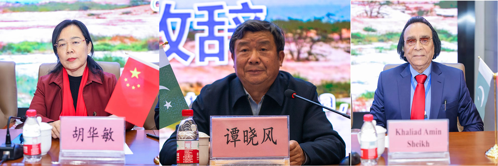 中华人民共和国驻卡拉奇总领事馆杨广元参赞,巴基斯坦伊斯兰共和国驻华大使馆哈什米大使线上致辞,中国科学院院士、河南省科学院院长徐红星院士,育林控股有限公司董事长胡华敏教授,中国林学会经济林分会谭晓风理事长,巴基斯坦卡拉奇大学校长穆罕穆德·法希姆·西迪基教授,费萨拉巴德农业大学校长贾法尔·贾斯卡尼教授,费萨拉巴德农业大学拉希德·瓦西姆·汗教授,印度河大学校长阿民教授等为大会纷纷致辞,对会议的顺利召开表示祝贺,为中巴两国在科技攻关、人才培养和产学研合作等方面提出建议和希望。