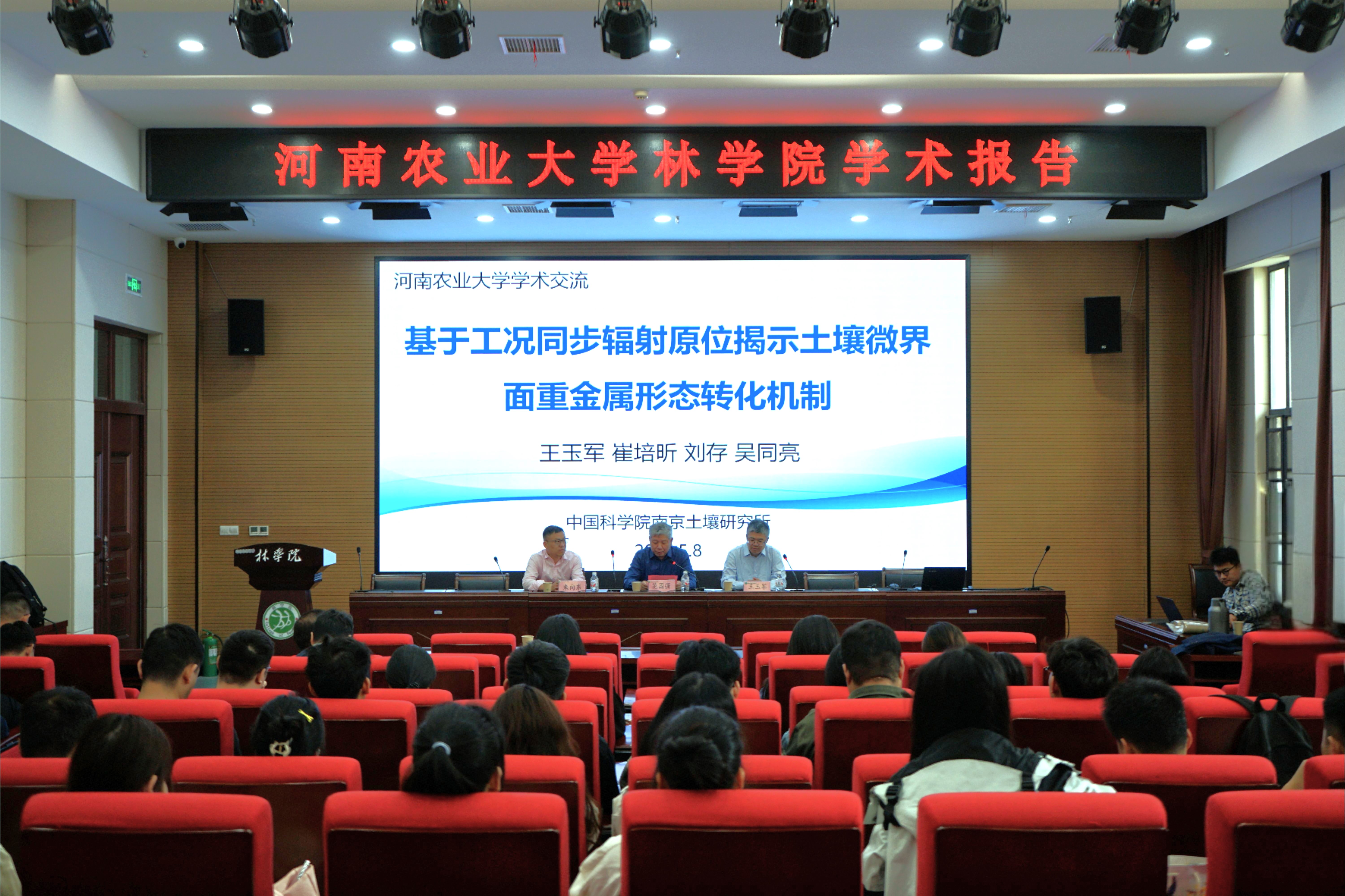 本网讯(通讯员 李烜桢)5月8日上午,中国科学院南京土壤研究所研究员、土壤与农业可持续发展全国重点实验室主任王玉军和中国科学院南京土壤研究所研究员朱向东应邀,于力行楼南-428会议室为丝袜av 师生作题为《基于工况同步辐射原位揭示土壤微界面重金属形态转化机制》和《生物炭低维化与环境地学应用探索》的学术报告。学院相关专业教师及研究生参加报告会。报告会由院长范国强主持。