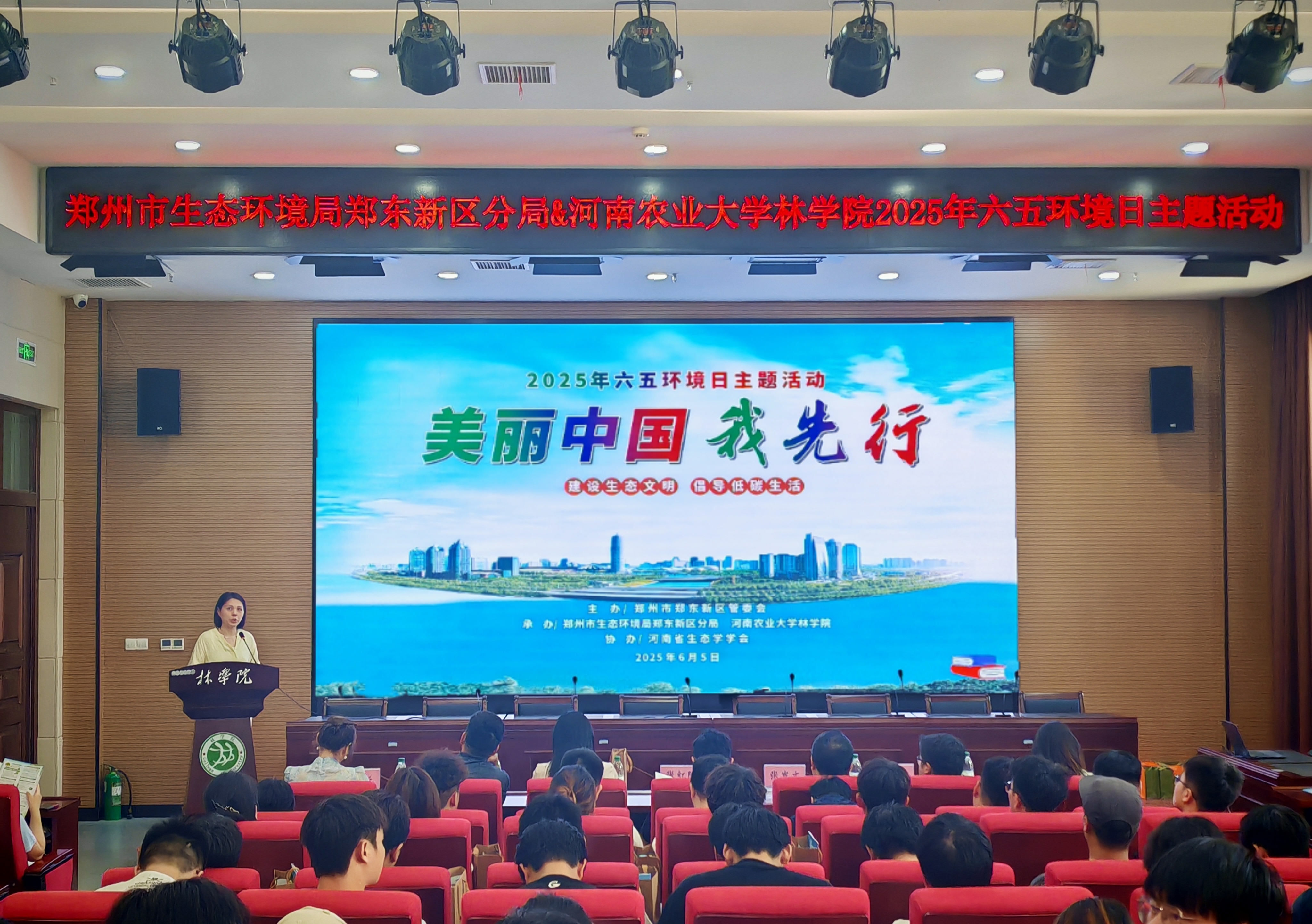 与郑州市生态环境局郑东新区分局承办的“美丽中国我先行”——2025年六五环境日主题活动在龙子湖校区力行楼举行。郑州市生态环境局郑东新区分局局长张红阳、丝袜av