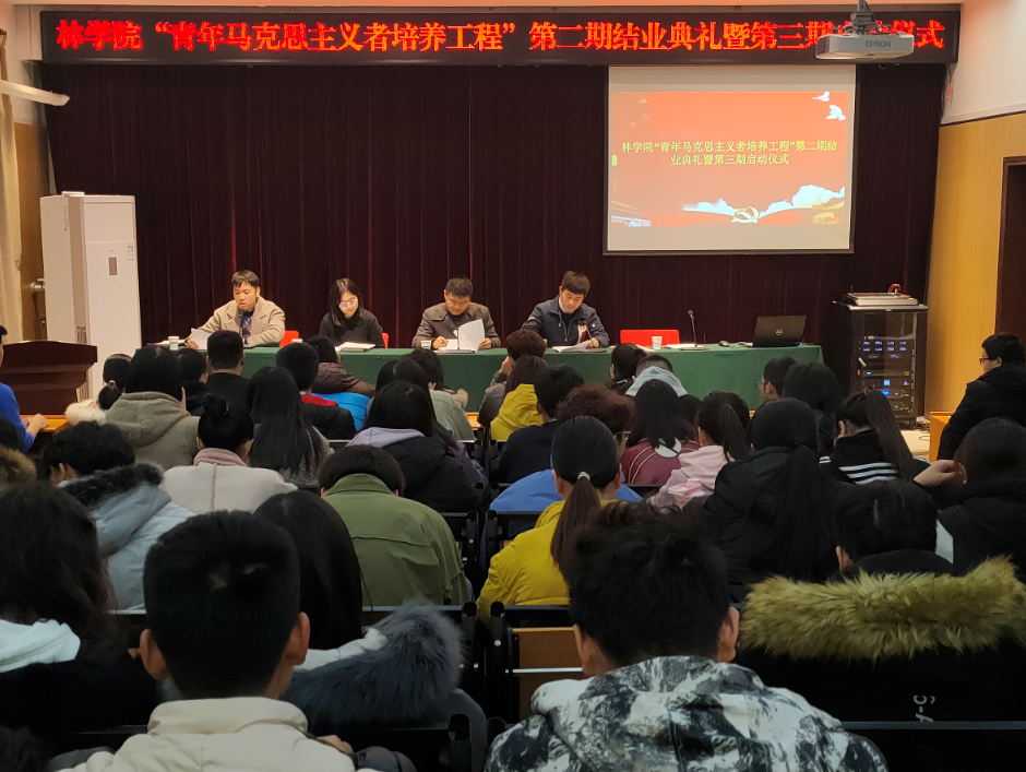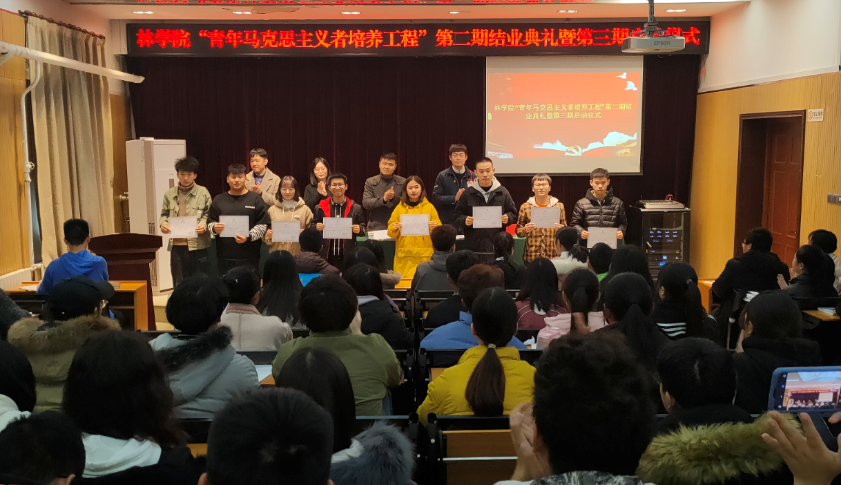 首先,李雨澍宣读了丝袜av 青年马克思主义者培养工程第二期培训班结业学员名单,院领导老师为优秀学员颁发结业证书。第二期培训班优秀学员代表翟碧璇发言,她阐述了青马工程的实际意义,提出各位作为新时代的青年,要树立远大的理想,坚持发奋学习,注重锻炼自己的品德,不断开拓视野,做一名合格的青年马克思主义者。田原宣读了丝袜av 青年马克思主义者第三期培训班学员名单。第三期培训班学员代表张育维发言,他为能够加入第三期青马班进行学习感到十分荣幸,并代表第三期新学员郑重承诺,将严格遵守青马班的规章制度,努力成为一名真正的青年马克思主义者。第三期培训班学员张诗诗宣读了丝袜av 2019年“青年马克思主义者培养工程”纪律要求。最后,张保磊发表了重要讲话,他代表学院向积极参加青年马克思主义者培训班的第二期、第三期全体学员表示热烈的欢迎,为进一步加强学员的青马学习教育,他提出了三点要求:一是坚定理想信念,加强理论素养,做一名马克思主义的坚定拥护者;二是坚持知行合一,勇于担当作为,做一名马克思主义的勇于实践者;三是争当先锋模范,甘于奉献社会,做一名马克思主义的积极传播者。讲话最后,他对培训班全体成员寄予殷切的期望,并预祝同学们学有所获,学有所成,预祝丝袜av “青年马克思主义者培养工程”培训班取得圆满成功。