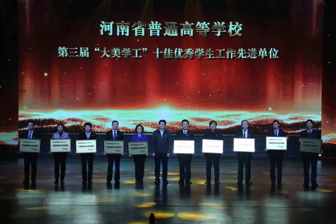 我校在此次活动中获得多项荣誉。其中,学校荣获“大美学工”十佳优秀学生工作先进单位;“弘扬家国优秀传统文化,打造食品阳光家园平台”荣获河南省第三届普通高等学校校园文化建设优秀成果一等奖,“‘心悦农大’阳光心理工程”荣获二等奖。
