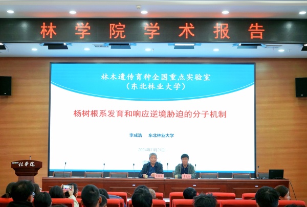 师生作题为《杨树不定根发生和根系响应逆境胁迫的分子机制》的学术报告。学院相关专业教师和研究生参加报告会。报告会由院长范国强主持。