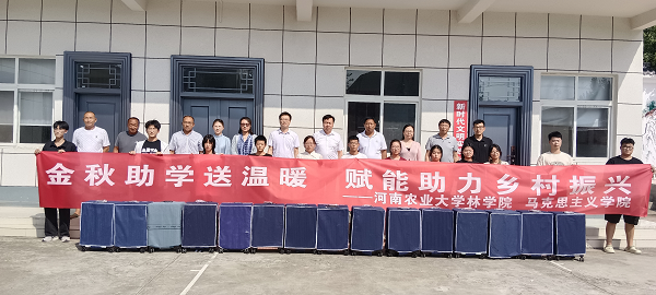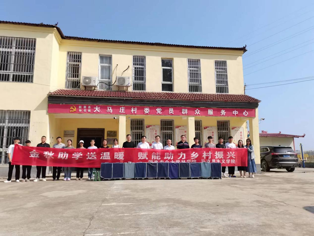 会后,丝袜av 与马克思主义学院一行为大学新生送上了慰问品,并在村委会院内合影留念。