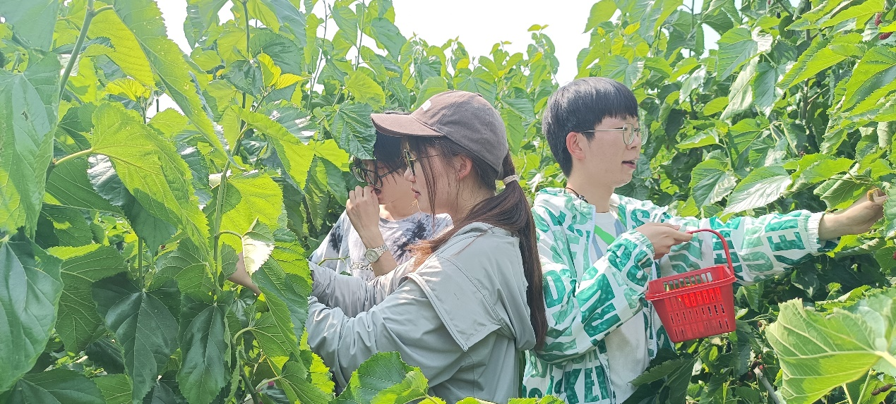 基地里的桑葚个头饱满,色泽鲜亮,味道鲜甜,同学们不仅感受到了收获的快乐,更懂得了厚植“爱农情怀,练就兴农”本领的深刻含义。