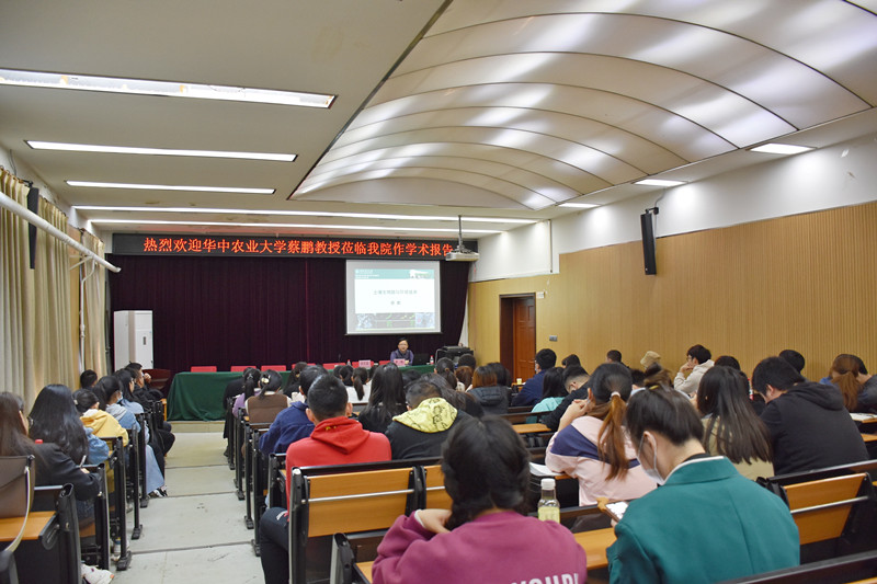 10月22日下午,华中农业大学农业微生物国家重点实验室、资源与环境学院蔡鹏教授应邀,在文化路校区2号楼四楼报告厅为学院师生作了题为“土壤生物膜与环境健康”的学术报告。学院相关专业教师和研究生参加了报告会。报告会由丝袜av