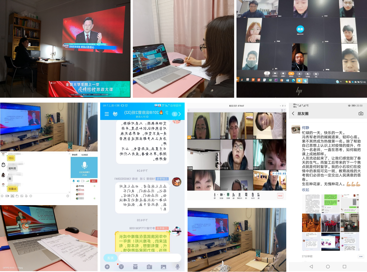 这节“思政大课”特别邀请艾四林、秦宣、王炳林、冯秀军四位教授,深刻解读了党中央关于疫情防控的决策部署,分析了中国抗疫彰显的中国共产党领导和中国特色社会主义制度的显著优势,讲述了防疫抗疫一线的感人故事。课程结束后,广大师生意犹未尽,在班主任的带领下召开网络主题班会,分享学习心得。大家纷纷表示,从这节“思政大课”中受到了鼓舞和激励,更加坚定了战胜疫情的信心和决心。同时,大家在班级群中发表感想,通过微信朋友圈、微博等进行网络留言,互相交流学习感悟。