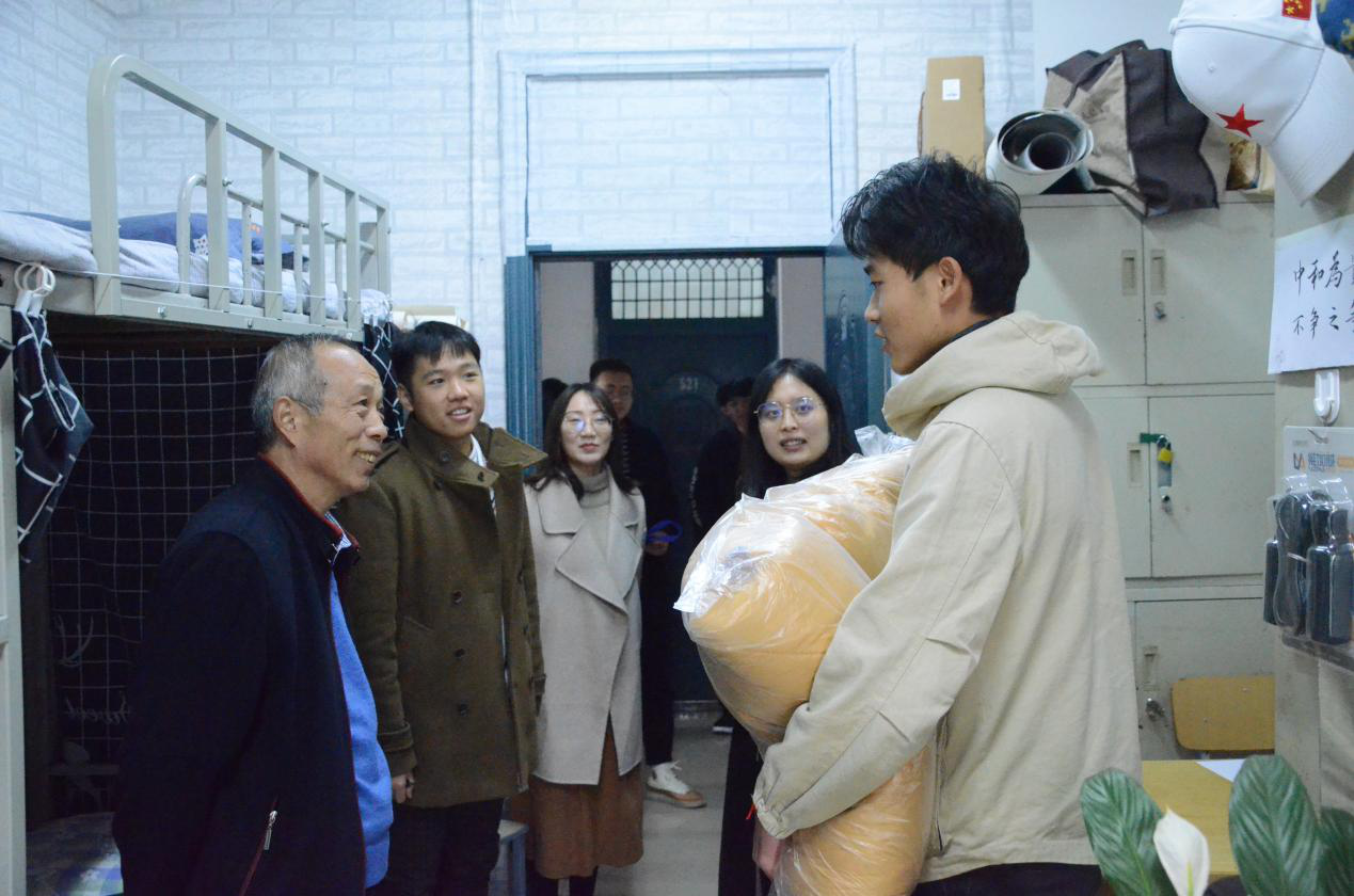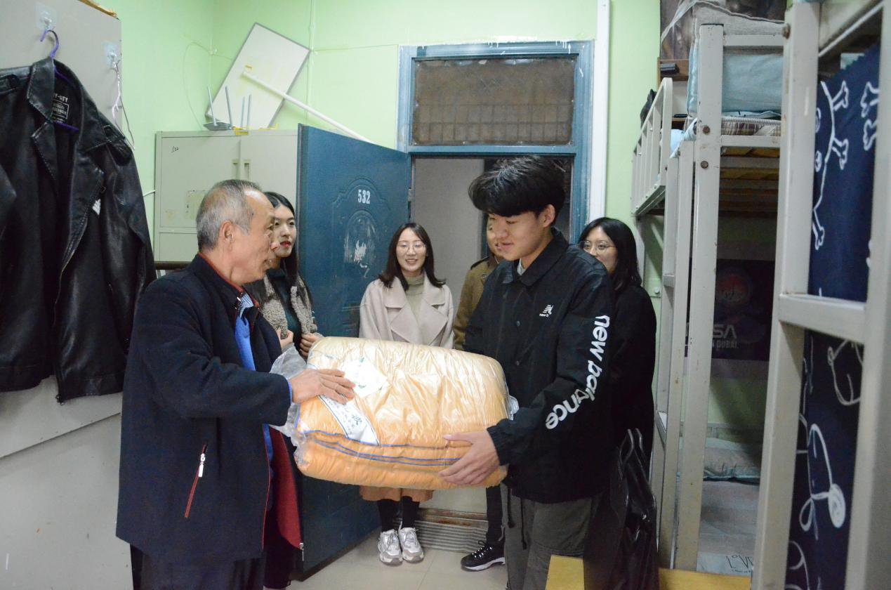 在送温暖活动中,老师们来到5号楼学生宿舍,为学生送上过冬棉被,让学生在这个冬季感受到来自学院的殷殷关切。各老师首先向学生宣讲党的十九届四中全会精神和省委书记王国生到我校与师生座谈时讲话精神,并衷心希望同学们能够真正领会十九届四中全会和王国生书记来我校讲话精神内涵,做社会主义合格建设者和可靠接班人。每到一间宿舍,丝袜av 领导老师与学生亲切交流,了解学生的学习和生活状况,勉励大家珍惜当下,不负青春,开拓进取,成长成才。对于来自省外的学生,学院领导更是关怀备至,嘱咐辅导员老师多关注他们的生活学习,提供必要的帮助。同学们纷纷表示会将温暖化为激励,将感动化作行动,刻苦学习专业知识,提升综合素质,用实际行动回报学院培养之恩。