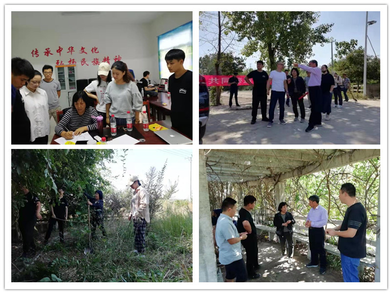 杨芳绒老师带领的服务团是对光山县槐店乡大栗树村自然居民点进行调查。入村之后,团队未敢休息片刻,直奔大栗树村。经过实地查看,与当地村民交流,初步摸清了村民对村庄规划落实、基础设施完善、环境整治等方面的需求。服务团经过开会研讨后,做了坑塘和小花园整治的初步规划方案,并带领师生党员一起指导村民整理小花园,还给村里带来菌类种植的良方。