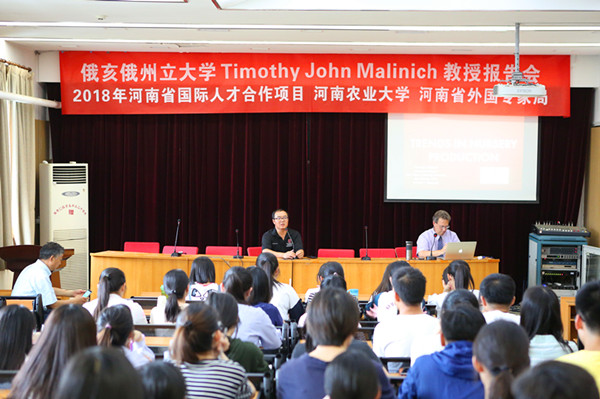 师生作了题为“美国苗圃生产及管理技术现状与发展趋势”的学术报告,详细阐述了美国景观苗木生产中育苗、栽培、养护、肥料使用、管理等中美苗木种植培育全过程的差异。Timothy John Malinich教授在题为“美国苗圃产业培训与推广的现状与发展趋势”的学术报告中,详细介绍了美国苗木产业的教育培训与推广方式,阐述了可持续研究和园艺教育计划发挥的社会、经济、生态功能与未来的发展前景。会议期间,丝袜av