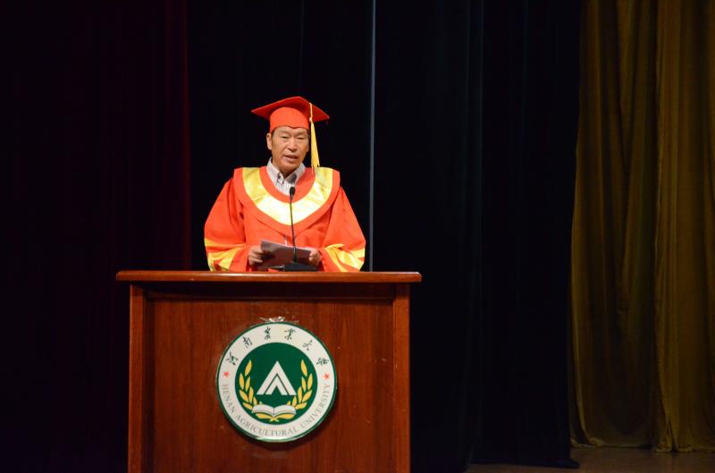会上,刘震宣读了《丝袜av 关于表彰2018届毕业班先进班集体的决定》和《丝袜av 关于表彰2018届优秀毕业生的决定》,孔德政宣读了《丝袜av 获得学位学生名单》。主席台上领导老师为先进班集体和个人代表颁发荣誉证书。杨喜田为博士学位获得者拨正流苏并颁发学位证书。院学术委员会委员为硕士、学士学位获得者拨正流苏并颁发学位证书。2014级林学专业2班冯雪瑾作为学生代表发言,她代表2018届全体学生感谢学院领导和老师的亲切关怀和悉心教导,感谢母校的全力栽培。家长代表贾玉金发言,她表示孩子们能够取得今天的成绩可喜可贺,离不开学院对孩子们的用心付出以及学院领导和老师对学生的谆谆教诲。教师代表环境系吴明作教授发言,他充分肯定学子们在过去取得的种种成绩,并希望未来的他们能够顶天立地,能够厚生丰民,也能够丰满自我,获得事业和生活的双丰收。