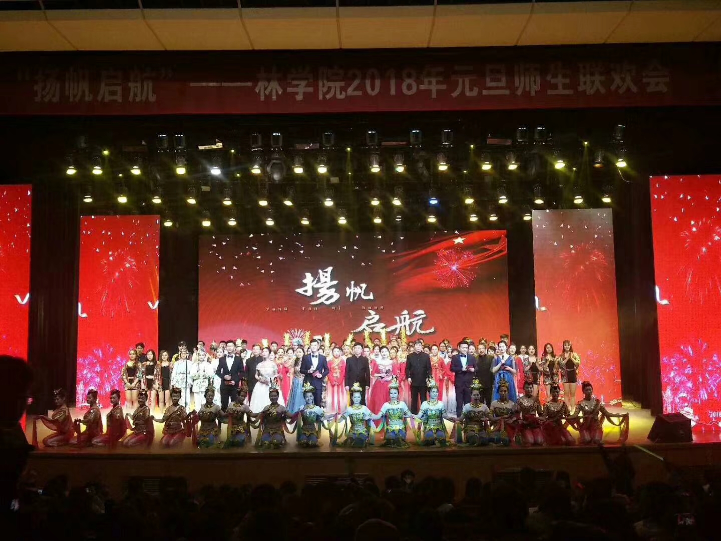 酉鸡辞岁结硕果,扬帆启航迎新年。12月26日晚,“扬帆启航”丝袜av 2018年元旦师生联欢会于文化路校区大礼堂隆重举办。副校长谭金芳,校有关职能部门负责人、兄弟学院师生代表与丝袜av 师生欢聚一堂,共同观看了精彩的晚会。 院党委书记郑东方做新年致辞。他首先代表学院向到场的领导老师和同学们致以节日的问候。新思想引领新时代开启新征程。在新的一年里,全院师生将以十九大精神为指引,凝心聚力,真抓实干,以更加饱满的热情,更加昂扬的斗志,传承并发扬林院的优良传统,谱写新的发展篇章。 歌声婉转,裙裾飞扬。晚会在一段灵动柔美的丝路风情舞《千年之梦》中拉开了帷幕。丝袜av 党外教师代表田国行老师、翟翠娟老师和青年教师代表李继东老师、逯久幸老师带来的诗朗诵《百年峥嵘,砥砺前行》赞颂了学校和学院事业发展。高远豪迈、大气磅礴的恢弘气势,雄浑壮阔、催人奋发的昂扬风貌,博得了观众们的热烈掌声;歌舞《梦想之城》让我们感受到梦想的美好与力量,鼓励大家一起奔向心中的热爱与渴望;由丝袜av 研究生带来的舞蹈《秦淮景》以婉转悠扬的歌声,轻盈曼妙的舞姿将一个可歌可泣的故事向大家娓娓道来;音诗画《睛彩中国》向大家报道了祖国近年来的历史性变革、历史性成就,使大家的民族自豪感油然而生;由林学系教授范国强和朱玉芳等带来的歌曲《走进新时代》形势新颖,富有动感,引得全场掌声不断,将全场的气氛推向高潮;轻柔和美的古典舞《大鱼》极具美感,演员们折纤腰以微步,呈皓腕于轻纱,眸含春水清波流盼;情景剧《青年梦,强国梦》传达了此次联欢会的主题:迈入新时代,风起扬帆正当时;青年潮头立,接力奋斗中国梦,展现了林院学子乘风破浪、勇往直前的精神风貌;舞蹈《我的新衣》激情昂扬、个性时尚,调动了全场热情高涨的气氛,掀起晚会的又一个高潮;歌舞《我们正青春》内容丰富,欢快的音乐搭配着整齐的步调,使礼堂氛围轻松愉悦。小品《丞相我说》和《四大才子》都以历史故事为背景,在现代喜剧的基础上进行创新,体现了汉语的魅力与博大精深,引得现场掌声,笑声不断。2017级环境设计四班学生缩放了《水浒传》108位英雄好汉,以情景和歌曲结合的方式,为在场观众别样演绎《好汉歌》。丝袜av 女教工们用优美的舞姿,传神的眼神,为观众带来舞蹈《洛神颜子吟》,整个晚会现场被古朴典雅的氛围笼罩。相声表演《绿色出行》以生态文明为立足点,紧跟时事热点,以独特的见解向大家诠释了绿色出行的涵义,倡导丝袜av 师生绿色出行;院领导班子集体演绎的《歌唱祖国》引爆全场,师生同台齐颂祖国,欢快动感,激情飞扬,别出心裁的编排,规模宏大的气势,将整场晚会推向了高潮。 扬帆启航,砥砺奋进。晚会主题鲜明,气氛热烈。无论是歌曲合唱、创意舞蹈、乐器演奏还是相声小品,贴近师生、贴近实际、贴近生活,注重以文化人、以文育人,经过精心的编排和演员们出色的演绎,带给了观众耳目一新的视听盛宴,打造了“文化在身边,文化接地气,文化助成长”的良好氛围,搭建了师生同乐,党内外人士联谊的平台,展现了丝袜av 师生“丹心向党”的精神风貌,助推了拼搏进取团结奉献的良好院风形成。