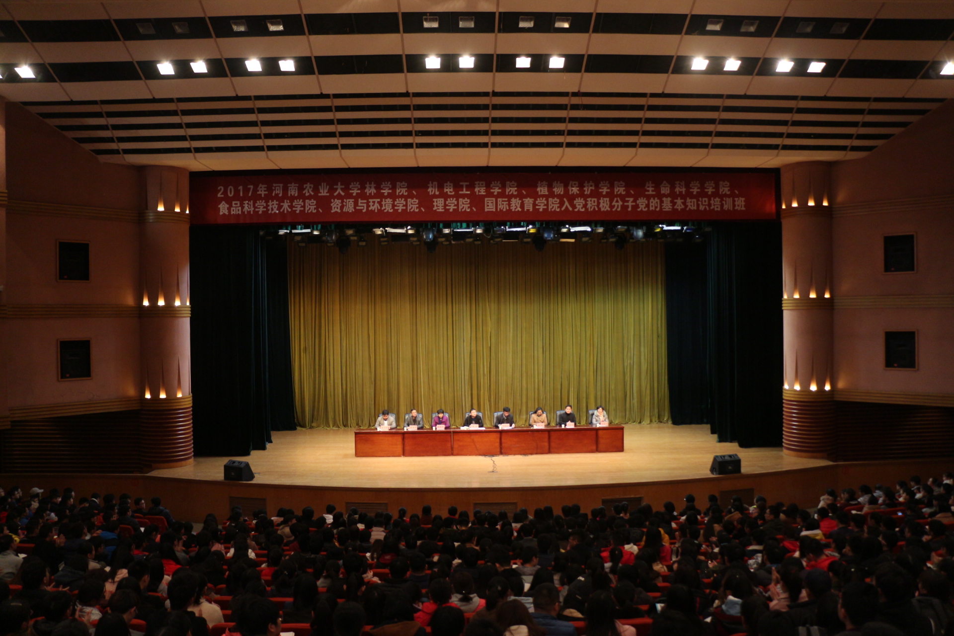 联合机电工程学院、植物保护学院、生命科学学院、食品科学技术学院、资源与环境学院、理学院、国际教育学院在校大礼堂成功举办2017年入党积极分子学习党的十九大精神培训班开班典礼。校党委组织部副部长、党校专职副校长余磊、丝袜av