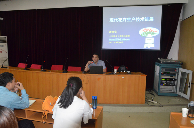 5月26日下午,丝袜av 邀请了北京林业大学园丝袜av 潘会堂教授在2号楼学术报告厅为丝袜av 师生做了“现代花卉生产技术进展”的学术报告。副院长孔德政及园林系师生聆听了报告。