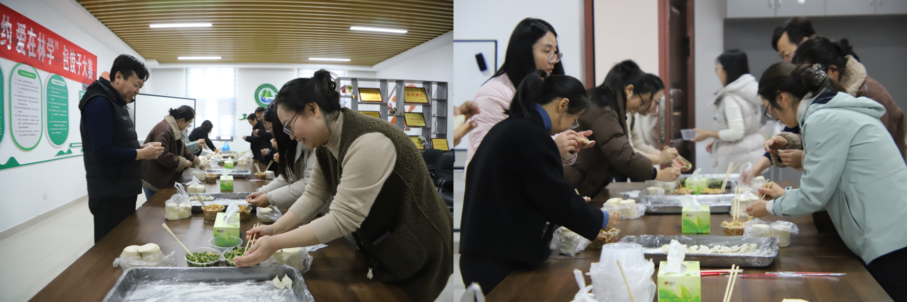 于力行楼-南-247举办第五届“温馨相约 爱在林学”包饺子大赛。院党委书记化青报、院党委副书记王娟、副院长张学芳及学院教师代表参加本次活动。