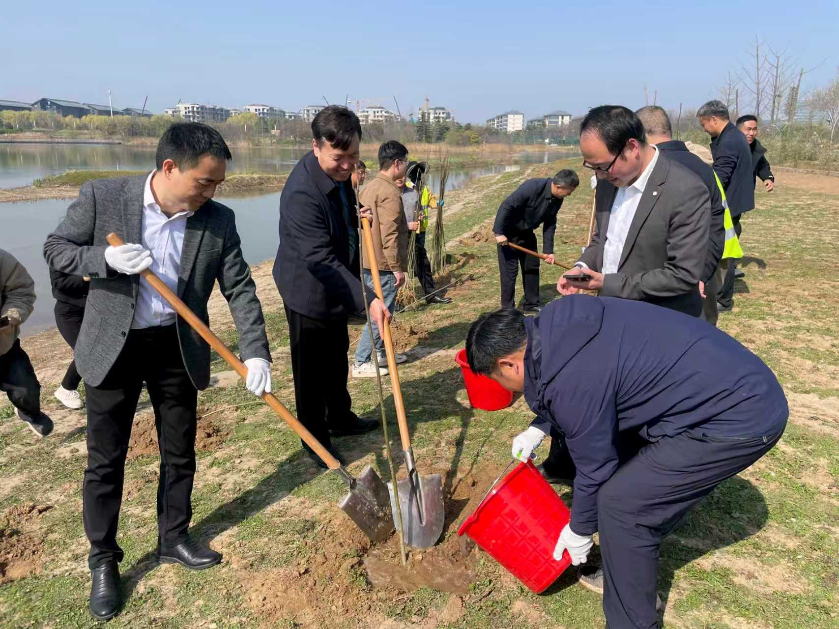 与会人员共同栽植了山桐子,挥锹培土、提水浇灌,一株株山桐子苗在龙湖湿地公园落地生根,为区域生态景观增添新绿与生机。刘震现场讲解山桐子栽植要点与管护技术,将理论与实践有机结合。