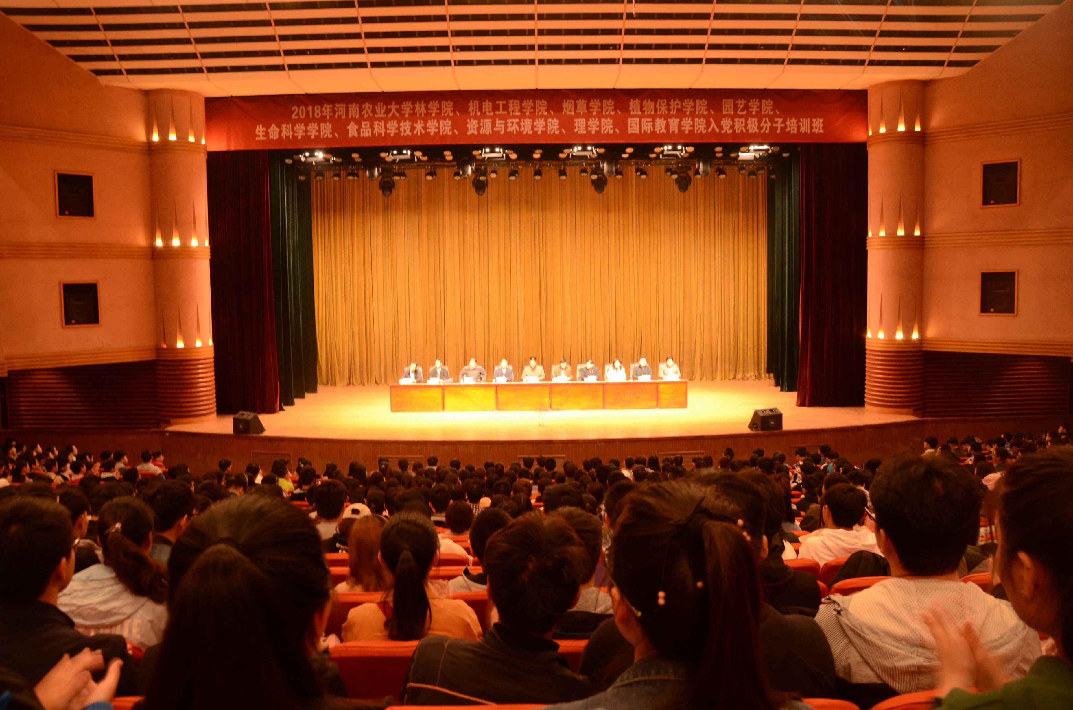 开班典礼在庄严的国际歌中拉开帷幕。耿超明宣读了《关于举办2018年丝袜av 、机电工程学院、烟草学院、植物保护学院、园艺学院、生命科学学院、食品科学技术学院、资源与环境学院、理学院、国际教育学院入党积极分子培训班的通知》。侯金超发表讲话。他说,同学们主动加入中国共产党是其成长道路上做出的正确的政治选择,对积极分子进行党的基本知识集中培训,是提高入党积极分子思想政治素质和党的政策理论水平的重要途径,同时此次培训也是贯彻落实十九大和校第七次党代会精神的生动实践。他对参加培训的全体学员提出了四点希望:一是抓住重点,学习领会好党的十九大精神;二是学好要点,学习党的基本知识,深化对党的认识;三是解决难点,在端正入党动机上下功夫;四是搞好结合点,用理论指导实践,自觉将十九大和校第七次党代会精神渗透到学习生活中去,为建设以农为优势特色的高水平大学做出贡献。