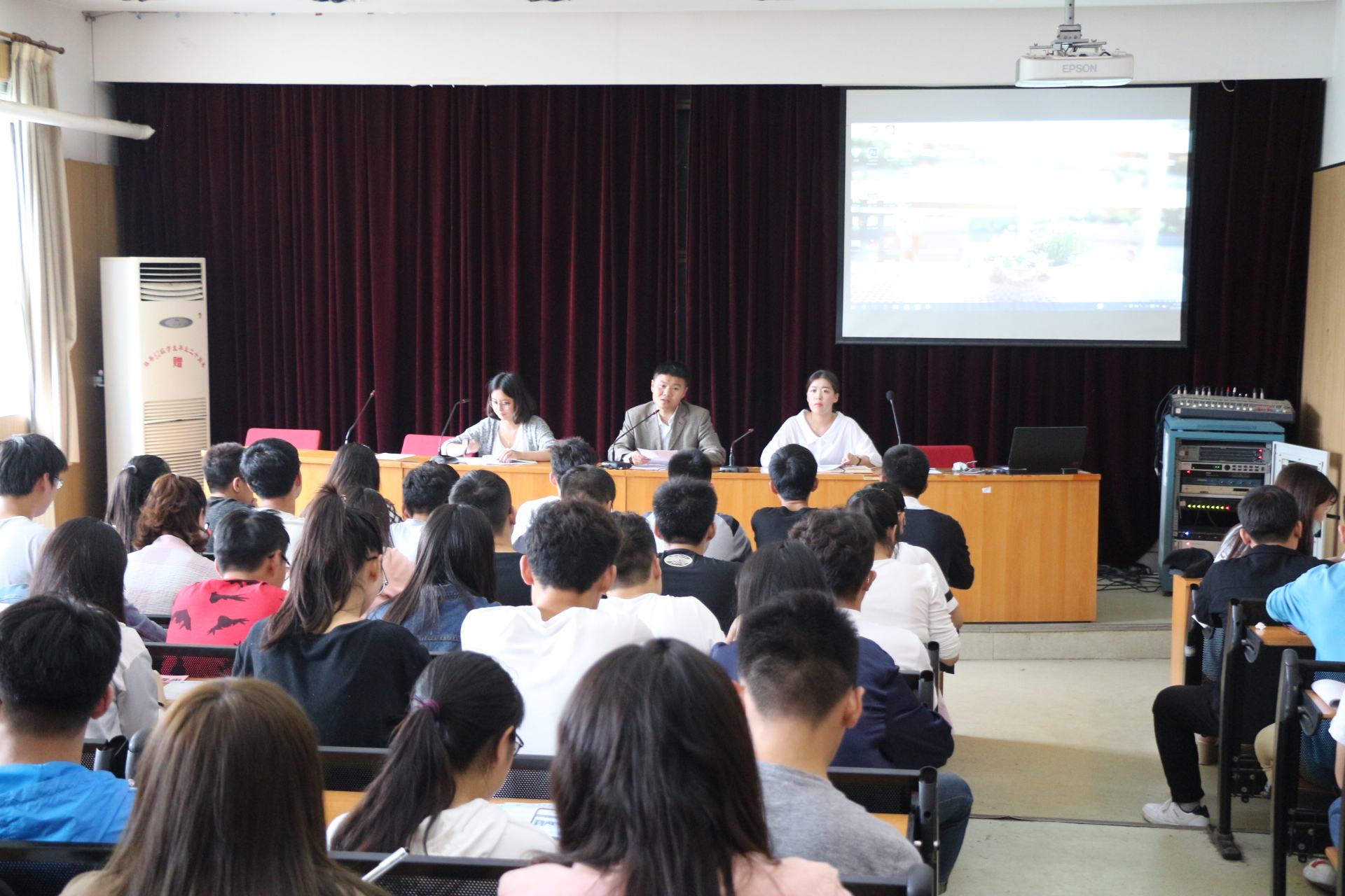 于2号楼四楼学术报告厅召开新学期学生干部工作会议,院团委书记张保磊、副书记姜鑫及院团委老师田原出席本次会议,学生会主席团成员、社团负责人及各班班长支书参加了此次会议。