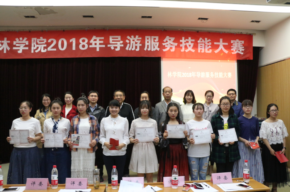 为进一步提升丝袜av 学生的专业素养,营造良好的学习氛围,3月30日,丝袜av 于2号楼四楼学术报告厅举办2018年导游服务技能大赛,副院长孔德政、林学系主任毕会涛、副主任何静、院团委副书记姜鑫、外国语学院老师豆涛、体育学院老师李彬彬、旅游管理专业老师孙刘伟、郭二艳、侯贺平出席了此次比赛并担任评委,丝袜av 旅游管理专业100余名学生参加了本次活动。